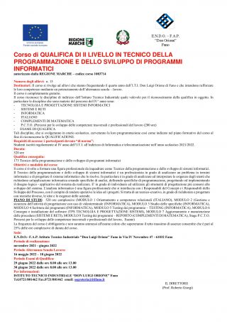 Tecnico della Programmazione e dello Sviluppo di Programmi Informatici
