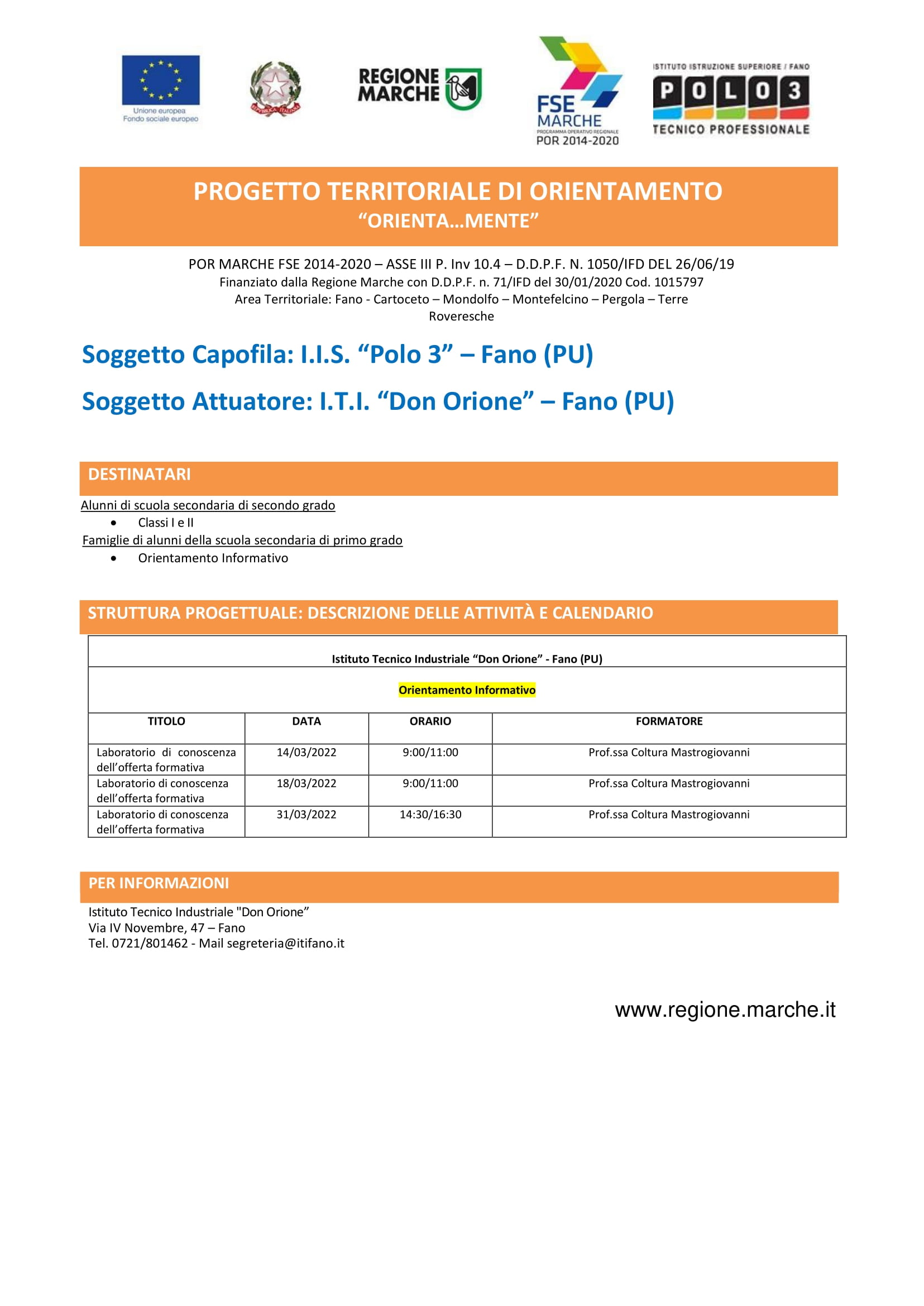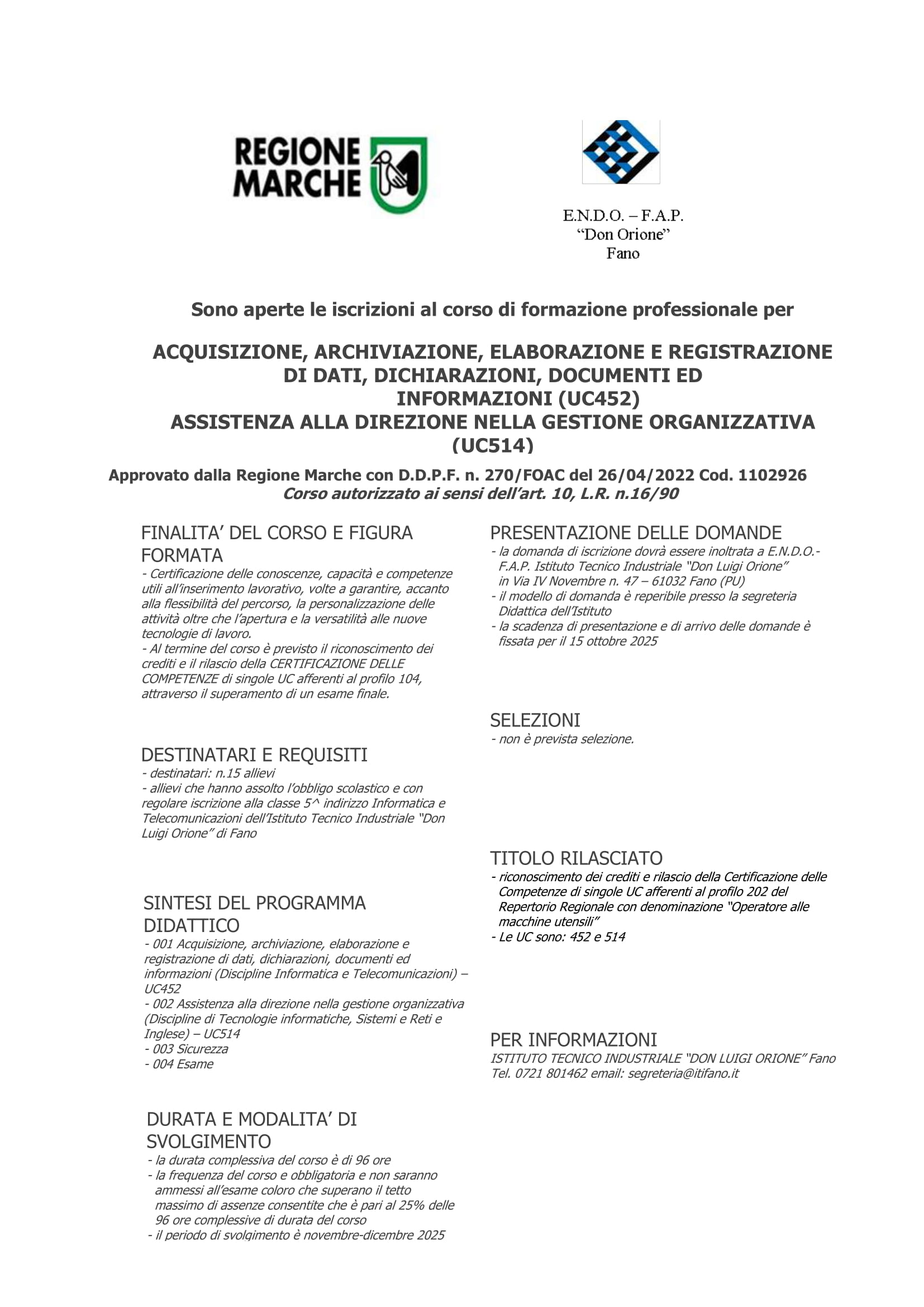 Domanda iscrizione Intervento