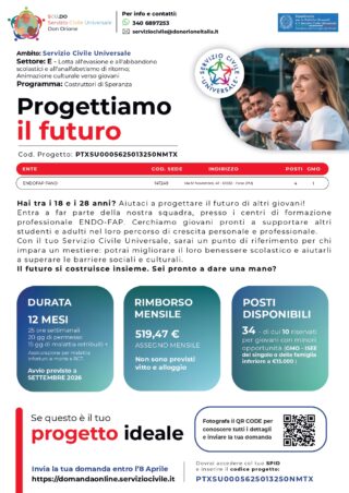 Presso le Scuole Don Orione di Fano è aperta la possibilità di fare domanda per il prossimo anno, come volontari del servizio civile universale (da settembre 2026 a settembre 2027).